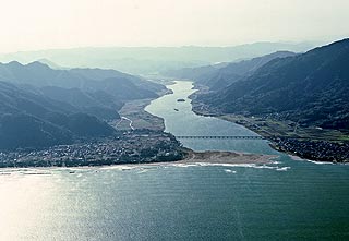 マンションの裏口から海水浴場を東に10分ほど歩くと由良川の河口があります。
