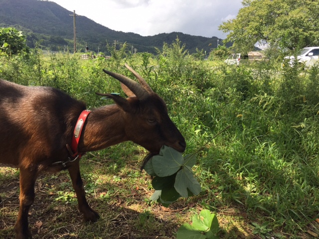 昨年度から地元の皆さんが飼育している、この「除草ヤギ」くんは、丹後半島にある碇牧場から秋の間だけ来てもらっているそうです。