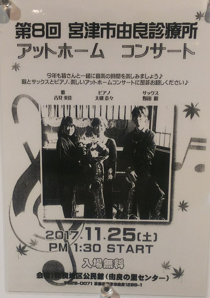 宮津市由良診療所でアット・ホームコンサートが開催されます。