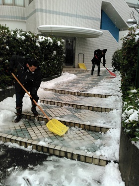 前日からの大雪の影響でレストラン入口の雪かきから始め、いざチャレンジ食堂開店!