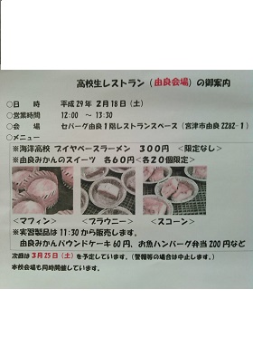 地元の高校生が地元食材を利用し、地元の方々に味わっていただく